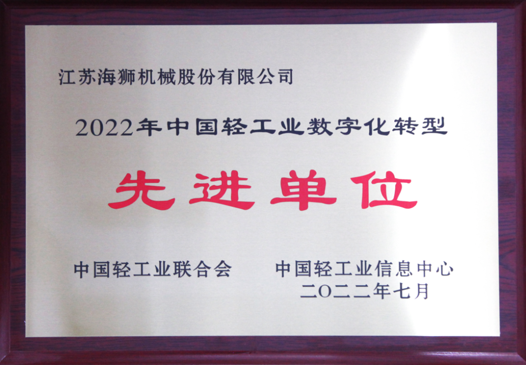 海獅機(jī)械榮獲中國(guó)輕工業(yè)數(shù)字化轉(zhuǎn)型殊榮